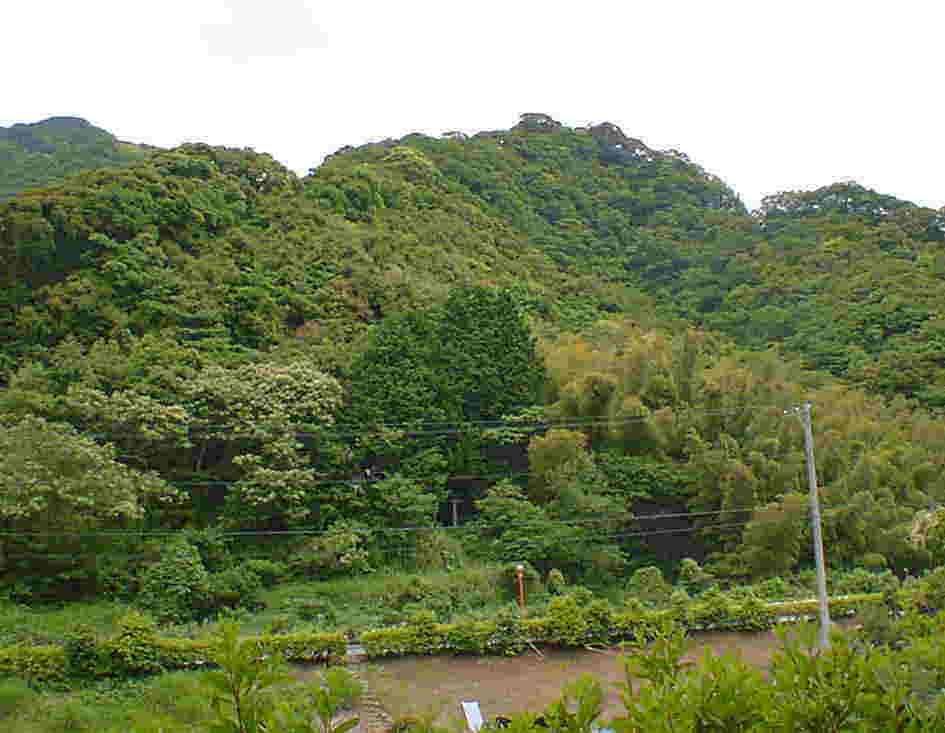 神社を後にし、県道に立って後ろを振り返りますと、ああ、あのてっぺんまで行って来たのか…、と驚くような高さで山頂が見えました。今は平和になったので忘れられたようなひっそりとしている龍爪神社。ここにも時代の流れの中でたたずむ古道の魂が存在していたのでした。
